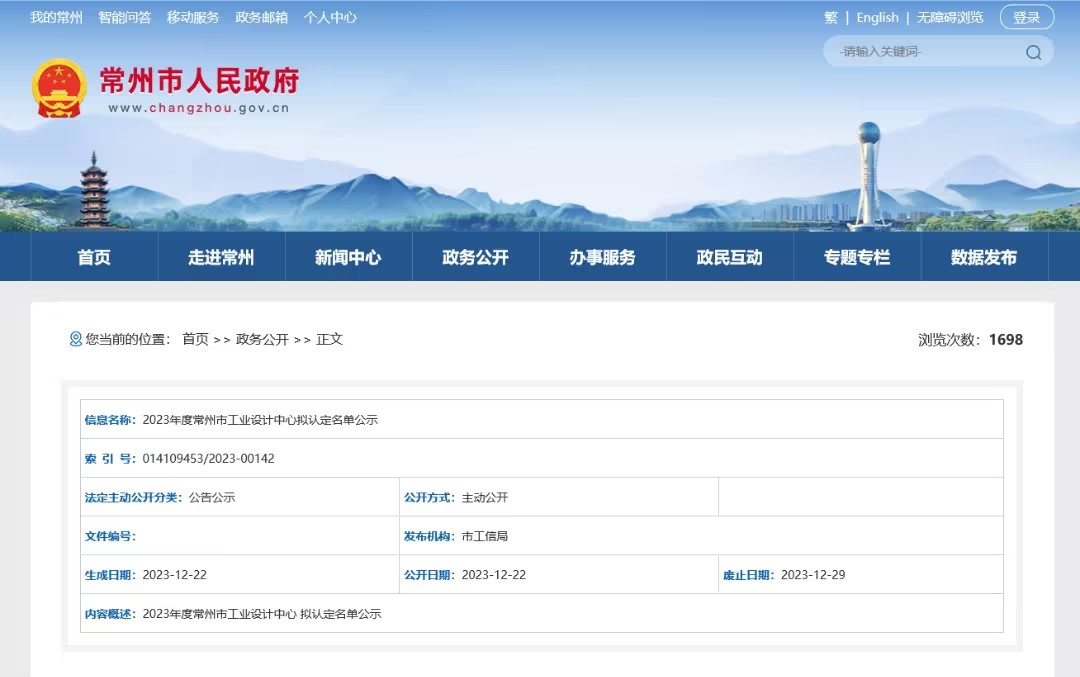 繼我司2023年12月30日獲得“常州市工業(yè)設計中心”認定之后,