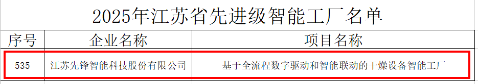 此次獲評(píng),標(biāo)志著先鋒在智能化轉(zhuǎn)型道路上取得了重要的階段性成果。先鋒將以此次獲評(píng)為契機(jī),深化智能制造的產(chǎn)業(yè)布局,完善智能工廠建設(shè)體系,賦能企業(yè)乃至干燥行業(yè)的高質(zhì)量發(fā)展。